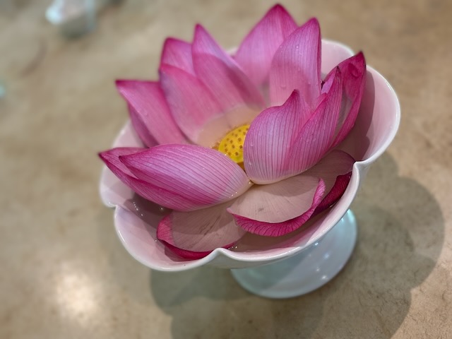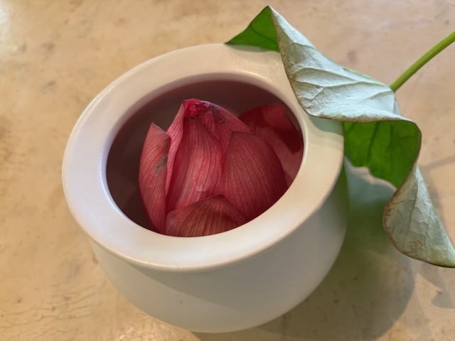 最後に、蓮の蕾にお湯をかけてお花が開いたところで更にお湯を注いで、蓮のお茶を楽しむ。お茶といっても通常のお茶とは違い、蓮の雄蕊の味だろうが、なんだかすっきりしている。蓮を隅々まで楽しんだお茶会は終わった。また来年も訪れたいと伝えると、リピーターが多いそうだ。頷ける。